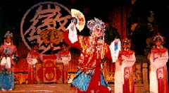 京劇的前身--徽劇 徽劇,淵源于明代的"徽池雅調(diào)"。明朝嘉靖年間,江西弋陽腔流傳到安徽青陽,貴池一帶,與當(dāng)?shù)孛癖娤猜剺芬姷拿耖g曲調(diào)相結(jié)合,創(chuàng)造了新腔,形成了具有當(dāng)?shù)氐胤教厣那嚓柷;青陽腔又受到民間山歌小調(diào)和昆曲的影響,長期發(fā)展而形成今天的徽劇。 清朝乾隆年間,徽劇名藝人高朗亭,郝天壽等,把徽劇帶到揚州演出。當(dāng)時揚州是全國文化中心之一,是"花部"的集中地,但很快即被藝術(shù)精湛的徽劇壓倒。乾隆五十五年,高朗亭又帶到了北京,受到了北京觀眾的歡迎。接著,又引起"四喜","春臺","和春"等徽班進(jìn)京。 徽劇進(jìn)京不久,漢劇也進(jìn)京,徽劇又從漢劇中吸收了西皮,進(jìn)一步豐富,發(fā)展了自己的聲腔。從此,徽劇不僅闖進(jìn)了皇宮,振動了京城,而且廣泛流傳,影響了全國.它在北方扎下根子,逐漸吸收了北方的京腔,其高腔與北方語言結(jié)合起來,發(fā)展成為京劇。它在南方的戲曲影響也十分深遠(yuǎn),江西的贛劇、四川的川劇、廣東的粵劇、廣西的桂劇、云南的滇劇,都受到徽劇不同程度的影響。 對徽劇表演藝術(shù)有著突出貢獻(xiàn)的杰出代表是老藝人程長庚。程長庚名椿,字玉珊,安徽潛山人。他把徽音、京音、楚音兼收并用,脫俗創(chuàng)新,卓然成家,對徽劇來說,他起了承前作用,對京戲來說,他起了起后作用,因此,他成為京劇的開山祖師。 徽劇的表演藝術(shù),豐富而多采。它講究平臺與高臺武功,講究身段、亮相的雕塑美,講究人物形象的塑造和畫面氣派等。平臺與高臺武功在徽劇里最為突出,平臺如"獨腳單踢"、"叉腿單踢"、"刀門"、"飛叉"等都異常驚險,至于高臺武工,更為險要,一般演員要翻三張桌子,有的要翻七張桌子。身段、亮相,在徽戲里很有雕塑藝術(shù)感;談∽⒅丶w表演,必要時眾歌齊舞,顯得氣勢壯偉,場面熱烈;談〉膭∧亢芏啵瑩(jù)記載有一千四百零四個,因年代較久,多為手抄本,不少的本子以失傳。解放后,經(jīng)過挖掘整理,富有徽劇特色的代表劇目有:《義虎報》、《巧姻緣》、《齊王點馬》、《水淹七軍》等。